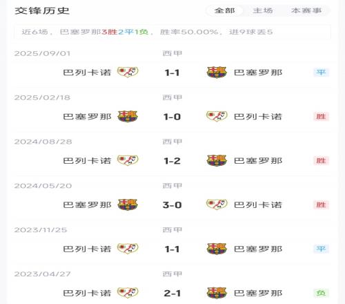 【兩隊交鋒歷史】