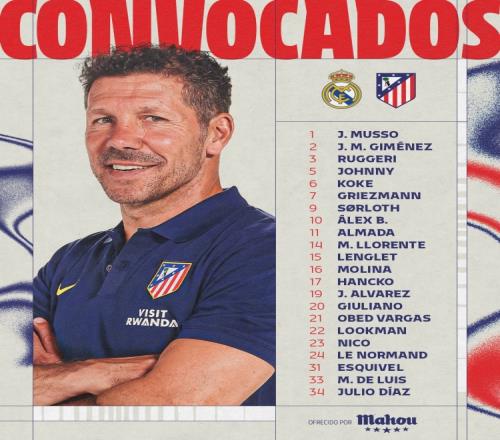 前鋒:7-格列茲曼、9-瑟爾洛特、10-巴埃納、11-阿爾馬達(dá)、19-阿爾瓦雷斯、20-朱利亞諾·西蒙尼、22-盧克曼、34-胡里奧·迪亞斯