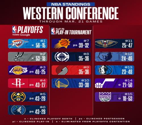截至今日西部排名