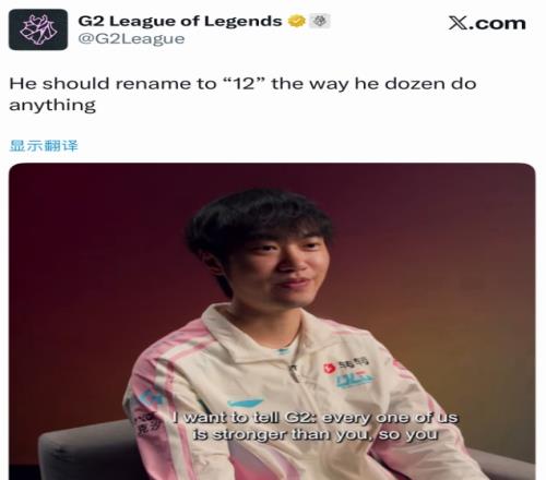 體育播報3月22日宣 今日先鋒賽決賽上,BLG首局不敵G2,賽后G2官方在推特發文稱:G2:他應該改名12,因為他什么也不做!12= dozen= doesn't