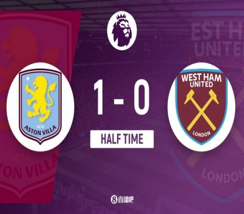 傷停補時3分鐘。上半場比賽結束,阿斯頓維拉1-0西漢姆。