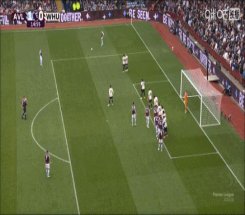第15分鐘,維拉開出戰術任意球,麥金弧頂兜射直掛死角!阿斯頓維拉1-0西漢姆!↓