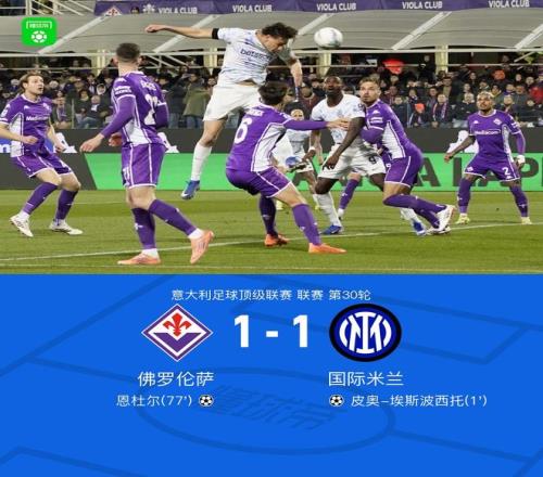 北京時間3月23日3:45,意甲第30輪繼續進行,國際米蘭做客弗蘭基球場挑戰佛羅倫薩,本場主裁判為安德烈亞-科隆博。上半場,皮奧頭槌閃擊,莫伊塞-基恩錯失良機。下半場,恩杜爾補射救主。最終,國米1-1佛羅倫薩,遭遇聯賽三輪不勝。
