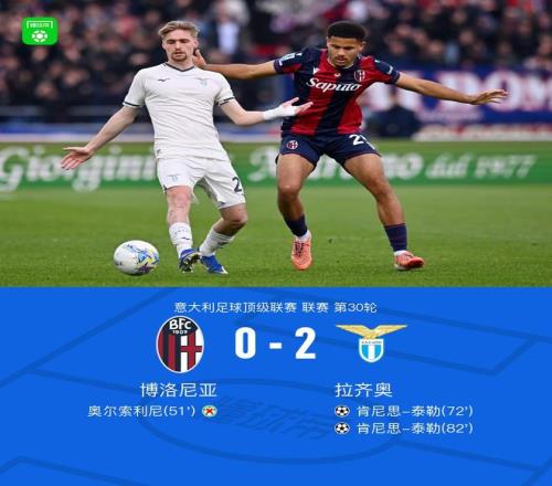 北京時間3月22日意大利足球頂級聯賽第30輪,博洛尼亞主場對陣拉齊奧。上半場奧爾索利尼罰失點球,下半場肯尼思-泰勒首開記錄,隨后肯尼思-泰勒破門擴大比分。最終比分博洛尼亞0-2拉齊奧。
