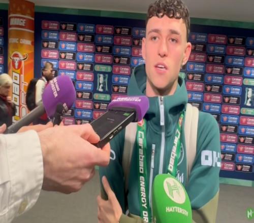 體育播報3月23日宣 英格蘭聯賽杯決賽,曼城2比0擊敗阿森納。賽后,福登接受了媒體的采訪。
