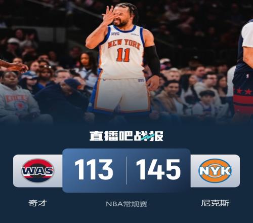 比賽上來,尼克斯率先搶下開局取得領先,奇才雖然咬住比分但在首節后半段分差還是達到兩位數,次節奇才依舊無法限制對手的攻勢,尼克斯單節再次拿到30+,半場結束時奇才已經落后16分;下半場回來,分差迅速被擴大到二十分,緊要關頭武克切維奇站了出來,他個人連拿8分完成止血,但這并沒能改變奇才的頹勢,尼克斯三節得分破百,比賽在末節早早就失去了懸念,最終尼克斯大勝奇才,迎來6連勝的同時也送給后者16連敗。