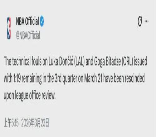 NBA宣布:撤銷東契奇的第16次技術犯規。