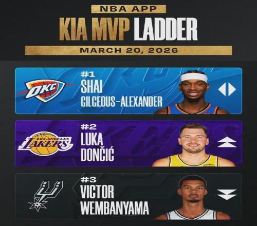 NBA公布的最新一期MVP排行榜,東契奇力壓文班亞馬爬升至第二,僅次于亞歷山大。