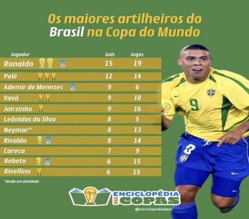 最近TNT體育整理了巴西隊世界杯歷史射手榜,羅納爾多15球排在第一,貝利12球排在第二,內馬爾8球也已經排在了前列。巴西隊世界杯歷史上的頂級射手,幾乎都在這張榜單里。可名單擺出來之后,很多人第一反應可能不是羅納爾多第一,而是內馬爾只排在這個位置?