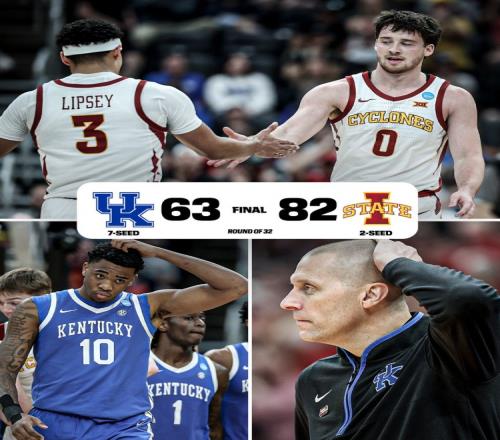 體育播報3月23日宣 今日瘋?cè)?2強賽,愛荷華州立大學(xué)以82比63大勝肯塔基大學(xué),再次將這支傳統(tǒng)勁旅擋在甜蜜16強門外。