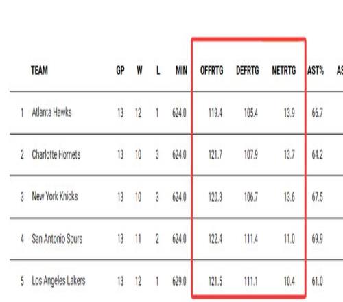 湖人本賽季贏球主要是依靠進攻,這13場比賽湖人進攻效率121.5聯盟第四,防守效率111.1聯盟第八(進步已經很明顯),凈效率值10.4聯盟第五,這就是東契奇帶來的變化。