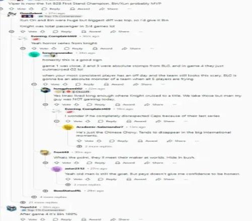 Xun、On和Bin發(fā)揮得都極其出色,但最大的差距在上路,所以我把票投給Bin。Knight在4局比賽里有3局完全就是個(gè)混子,笑死。