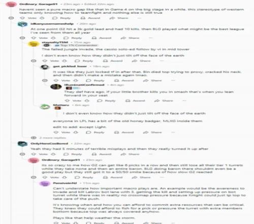 G2一度取得了3k的經(jīng)濟(jì)領(lǐng)先并拿了10個(gè)人頭,然后BLG打出了我今年見(jiàn)過(guò)他們打得最好的一局比賽。