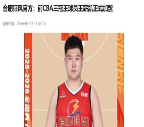 2026年3月19日,NBL合肥狂風籃球俱樂部通過官網及全平臺同步官宣:功勛級外線球員王薪凱正式加盟,將身披象征榮耀的20號球衣,代表球隊征戰本季NBL聯賽。這條消息一經發布,即刻點燃廣東球迷的情感開關,評論區瞬間淚目刷屏,“他回來了”成為當日最熱話題。