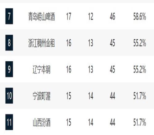 7-11分別是青島、浙江、遼寧、寧波與山西。青島和浙江這輪都輸球了,青島輸給了福建,核心還是下半場進(jìn)攻沒有打開,被對手逆轉(zhuǎn),反正球迷都看得莫名其妙。浙江則輸給了北控,內(nèi)線還是太被動了。遼寧這輪逆轉(zhuǎn)同曦,布羅金頓的挖掘?qū)η蜿牭奶嵘菍嵸|(zhì)性的。寧波大勝新疆,展現(xiàn)了驚喜。至于山西這輪輸給廣州,核心還是迪亞洛不能打,隊內(nèi)多人出現(xiàn)身體不適的情況。