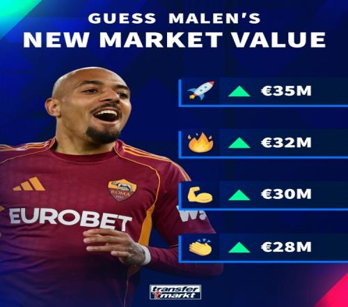 德轉(zhuǎn)顯示,27歲的馬倫新一期的身價(jià)將會(huì)上漲,他目前身價(jià)2500萬(wàn)歐元,在荷蘭前鋒里排名第七,身價(jià)更新后在2800萬(wàn)歐元、3000萬(wàn)歐元、3200萬(wàn)歐元和3500萬(wàn)歐元之間。
