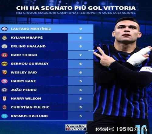 對陣科莫時,國米居然全場只有3次射門&射正次數為0,當思念是一種病時,勞塔羅的個人價值順勢得到了升華,值得一提的是,在本賽季五大聯賽制勝球的次數上,勞塔羅(9次)將姆巴佩和哈蘭德兩位神鋒比下去了。