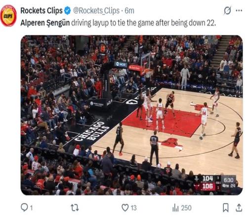 末節(jié)打到關(guān)鍵時(shí)刻還是依靠申京,終場前6分30秒申京在籃下的勾手已經(jīng)幫助火箭扳平?;鸺闯?分后申京被換下休息,結(jié)果火箭再度落后。