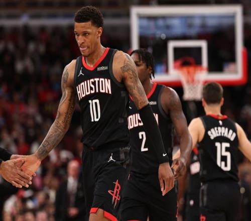 次節火箭在防守端終于開始放棄聯防不給公牛輕松外線出手的機會,但火箭的進攻還是很差,杜蘭特半場13分3籃板,申京半場12分4籃板,火箭上半場就是依靠這兩人苦撐全隊。謝潑德、小賈都是瘋狂打鐵,替補席的伊森、芬尼史密斯都沒什么貢獻,整個上半場火箭就是夢游的狀態。