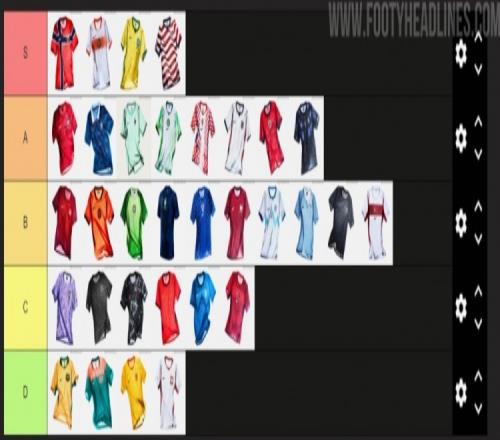 足球裝備網站footyheadlines一共將耐克球衣分成S級、A級、B級、C級以及D級,挪威主場球衣、巴西主場球衣、美國主場球衣和荷蘭客場球衣位列S級,有8件球衣位列A級。