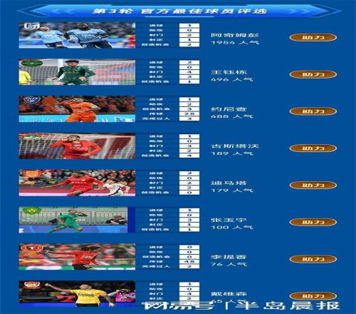 中超官方24日公布了第三輪最佳球員候選名單,阿奇姆彭上榜。英博與海港一戰(zhàn)中,阿奇姆彭攻入關(guān)鍵進球,幫助球隊掀翻衛(wèi)冕冠軍,取得賽季首勝。斯坦丘則以12421米位列跑動榜次席。