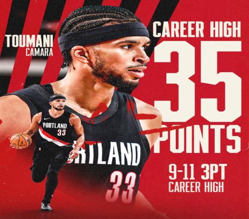 卡馬拉此役狂轟9記三分,得到全場最高的35分,均是創造生涯單場紀錄,率領開拓者輕松大勝籃網。