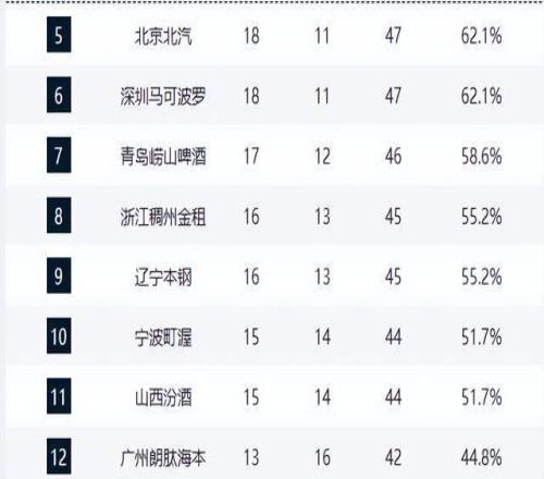 青島隊(duì)(17勝12負(fù))與浙江隊(duì)(16勝13負(fù))分列第七、第八,季后賽門檻清晰可見。寧波隊(duì)(15勝14負(fù))與山西隊(duì)(15勝14負(fù))同分,位列第十、十一,競(jìng)爭激烈。廣州隊(duì)(13勝16負(fù))以微弱優(yōu)勢(shì)守住第十二位,成為季后賽“守門員”。北控、福建、新疆、吉林等隊(duì)仍存理論晉級(jí)希望,競(jìng)爭格局高度開放。