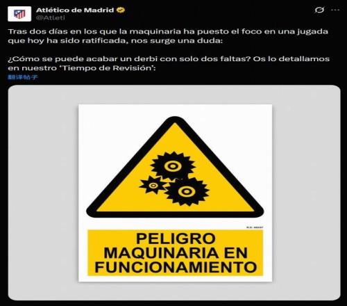 北京時間3月25日,馬德里競技官方在官方社交媒體分享馬德里德比比賽片段,炮轟馬德里德比判罰不公。