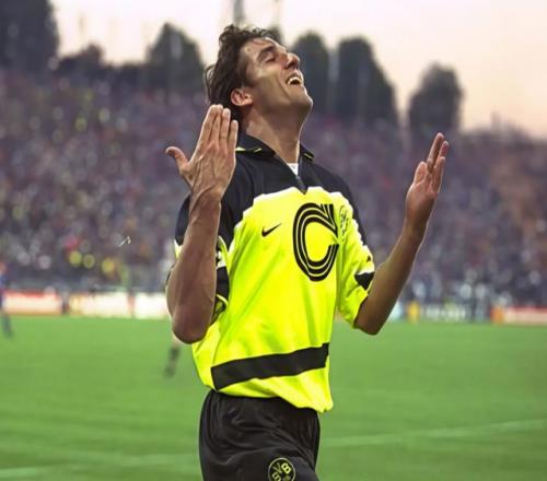 雖然頂著歐洲杯金靴的光環,可是里德爾在俱樂部的日子并不好過。當時他效力于意甲的拉齊奧,隊內有另一位大神西格諾里,里德爾的戰術地位和出場時間都受到了擠壓。于是,1993年,他重返德甲,加盟了多特蒙德。