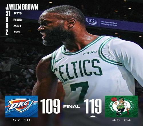 布朗31分亞歷山大33分 綠軍終結(jié)雷霆12連勝