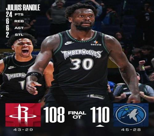 本場比賽加時(shí)賽,火箭開局13-0,隨后森林狼打出一波15-0完成逆轉(zhuǎn),創(chuàng)NBA歷史加時(shí)最大分差逆轉(zhuǎn)!