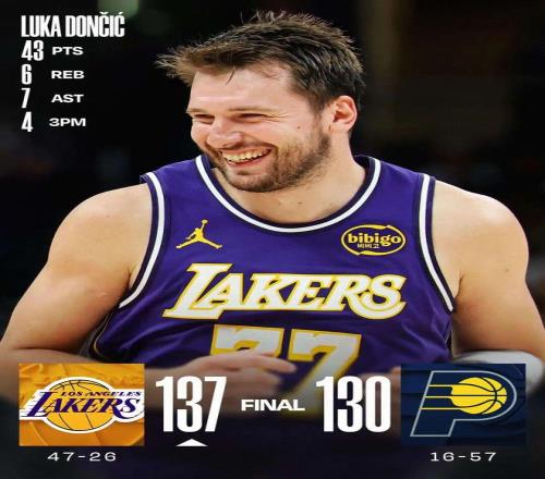 東契奇43分詹姆斯23分 湖人勝步行者