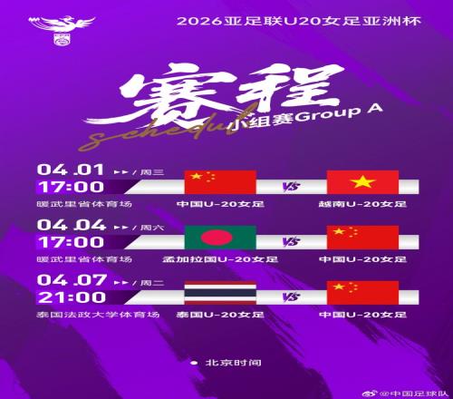 體育播報(bào)3月29日宣 2026亞足聯(lián)U20女足亞洲杯將于4月1日至4月18日在泰國舉辦,中國隊(duì)被分在A組。