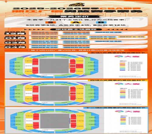 票價檔位:這兩場賽事分別為山東(B類)、廣東(S類),均設置多檔票價,滿足不同球迷觀賽需求,具體票價及座位分區可查看下方海報或前往購票平臺查看詳情,無論身處哪個區域,都能沉浸式感受賽場熱血氛圍。