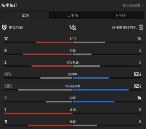 第17分鐘,紐卡斯爾噴氣機曾有直接反超的機會!但可惜挑射稍稍偏出!↓