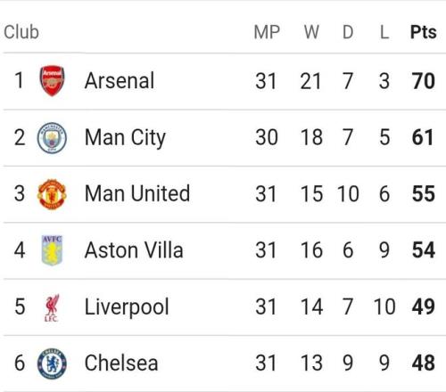 假設(shè)英超獲得五個(gè)歐冠參賽名額,那么曼聯(lián)在最后7場比賽中只要取得4勝1平的成績,就足以讓他們時(shí)隔兩個(gè)賽季后重返歐冠聯(lián)賽。如果最終能守住排名第三的位置,將是弗爵退休13年以來,紅魔第5次躋身英超前三。