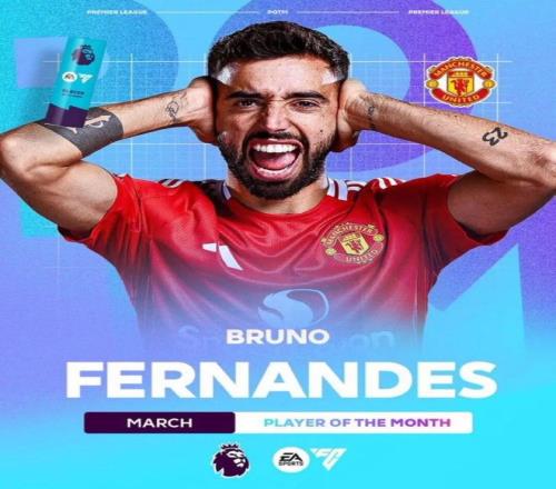 B費當選英超3月最佳球員!曼聯隊長目前已拿到6次英超月最佳,僅次于阿奎羅,凱恩和薩拉赫(都是7次)。