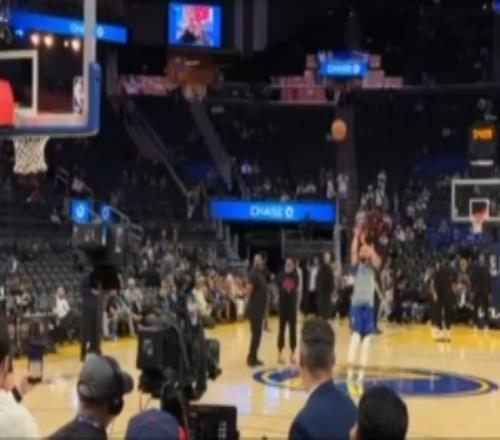 勇蜜放心了!小吧現(xiàn)場直擊庫里慣例半場三分訓(xùn)練3投“僅”1中