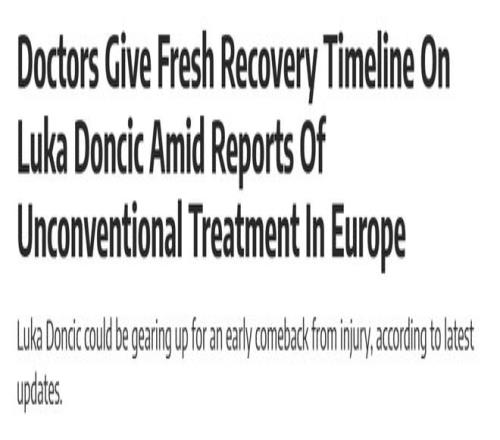 綜合兩位醫(yī)生的看法,使用新療法的東契奇有望在3周左右復(fù)出趕上季后賽首輪的部分比賽。不過,這也確實要冒著傷勢加重的風(fēng)險。