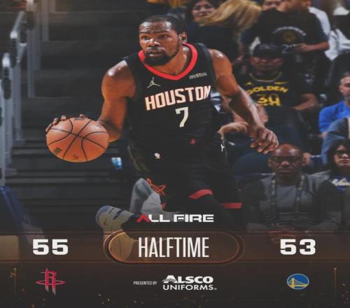 勇士第二節(jié)長時間使用三后衛(wèi),甚至一度祭出四后衛(wèi),籃板球被爆也在情理之中。半場戰(zhàn)罷,火箭55-53領(lǐng)先勇士2分。杜蘭特12分4板3助、小賈11分3板;桑托斯12分3板、庫里10分。下半場開始,波神兩記暴扣,其中一記2+1!