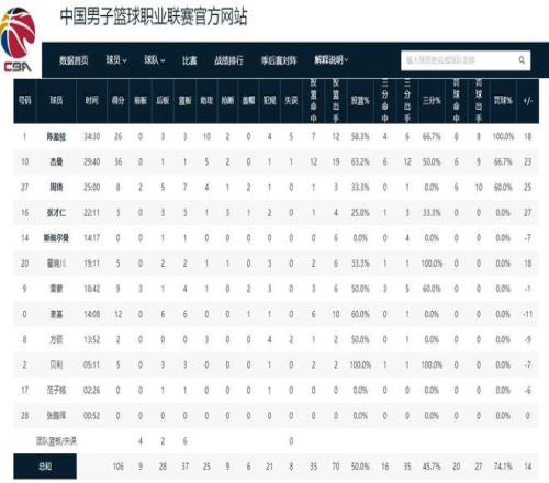 北京男籃贏下這場比賽的兩大功臣,無疑是杰曼和陳盈駿,這兩人支撐起了球隊的進攻。杰曼在這場比賽中火力全開,19投12中砍下了36分5助攻2搶斷的數據;陳盈駿也是大殺四方,12中7得到了26分3個籃板10次助攻。這兩人合力砍下了62分,幾乎占全隊得分的三分之二。周琦這場比賽的得分雖然不高,但防守端的作用還是非常明顯的,正負值達到了全場最高的+25,這足以說明了周琦在場上的作用。