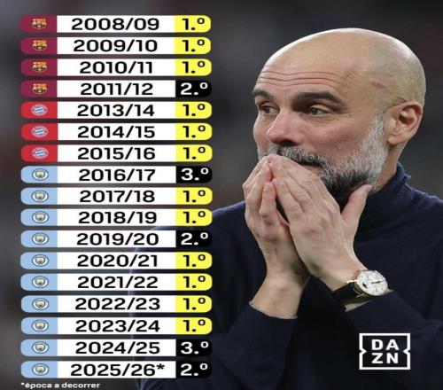從執教巴薩開始,他基本每年都能把球隊帶到西甲第一;去拜仁三個賽季,全是德甲第一;到了曼城,又已經帶走了6座英超冠軍。這意味著瓜迪奧拉的強,是橫跨了三個頂級聯賽、長達十幾年的高水準。