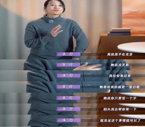 當(dāng)時(shí)朱丹在外地回不來(lái),田笑蜜就寄了張白紙過(guò)去,說(shuō)"你簽個(gè)名就行,內(nèi)容我后面填"。