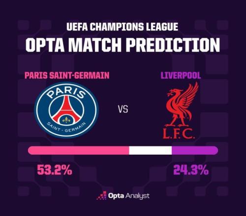 反觀大巴黎這邊,國內聯賽的爭冠壓力幾乎是沒有的,為保障歐冠能全力出擊,法甲還給他們“開了后門”,提前把本周末法甲“榜首大戰”給挪到了其他時間。換言之,眼前這一周時間里,巴黎圣日耳曼需要考慮的問題就只有“如何跨過利物浦殺進歐冠四強”。在這種不對等的備戰狀態下,大巴黎真把利物浦給打花了也有可能,尤其是對手這次也缺了受傷的阿利松。不過從超算的模擬推演來看,雙方的差距倒也不是特別離譜,大巴黎獲勝概率高達53.2%,但利物浦也有24.3%。