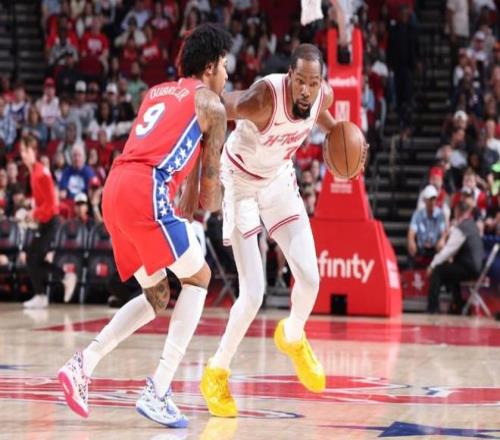 末節火箭隊進攻啞火失誤增多,76人趁機在格萊姆斯的帶領下,打出了16-0的追分高潮,94-101雙方分差回到個位數。杜蘭特和霍勒迪先后三分命中,火箭穩住局面。76人隊又連追6分,100-107追到只差7分。最后1分15秒杜蘭特三分命中,110-100終結比賽懸念。最終全場比賽戰罷,火箭隊113-102贏下勝利。