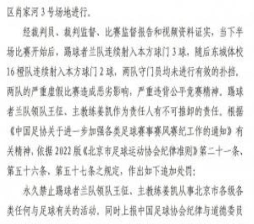 體育播報04月10日宣 北京市足協紀律委員會發布對中青賽U10組嚴重假球案的追加處罰通報,涉事兩隊的主教練、領...