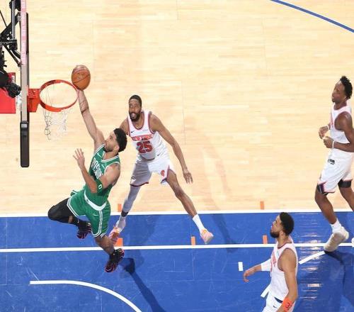 關鍵時刻塔圖姆沒能復制上賽季的絕殺劇本。終場前他兩次強殺籃下,一次被哈特切掉,一次拋投偏出。尼克斯靠布倫森和唐斯的罰球收掉比賽,全場只贏了6分,卻足以讓凱爾特人的排名懸念延續到最后一戰。