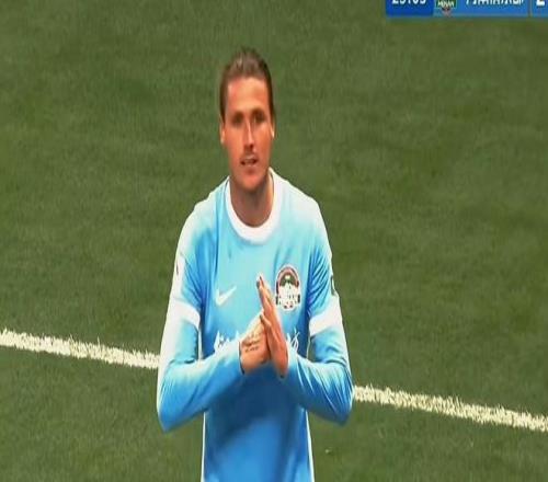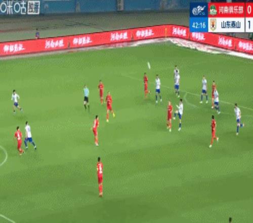 王國明出擊失誤,卡扎伊什維利挑射破門,河南隊0-1落后山東泰山。