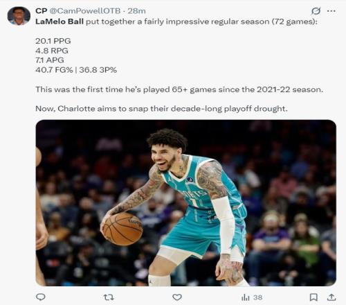 這場比賽拉梅洛-鮑爾29分鐘,19中7,三分16中5,拿到19分7籃板6助攻2搶斷5失誤,命中率36.8%,三分命中率31.2%,說實話表現很一般。