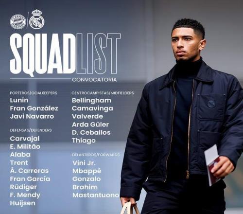 皇馬陣中,貝林厄姆、卡雷拉斯、赫伊森、姆巴佩、維尼修斯5人,如果本場比賽再度染黃,將自動停賽1場。客戰拜仁,皇馬需要逆轉,這5名球員也要謹防染黃。
